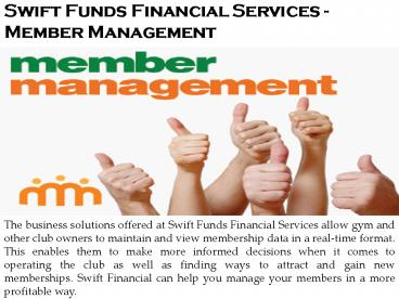 Swift Funds Financial Services - Member Management PowerPoint PPT Presentation