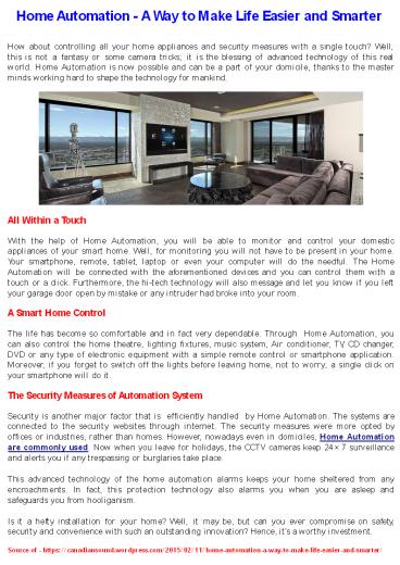 1Home Automation A Way to Make Life Easier and