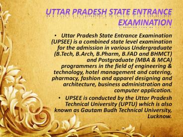 • UPSEE is conducted by the Uttar Pradesh Technical