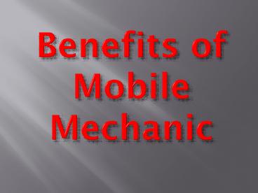 Title: Benefits of Mobile Mechanic