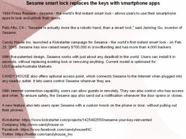 Sesame smart lock replaces the keys with smartphone apps PowerPoint PPT Presentation