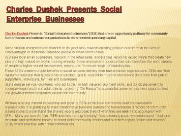 Charles Dushek Presents Social Enterprise Businesses PowerPoint PPT Presentation
