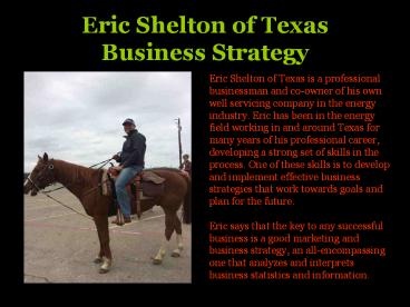 Title: Eric Shelton of Texas Business Strategy