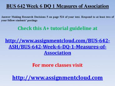 BUS 642 Week 6 DQ 1 Measures of Association PowerPoint PPT Presentation