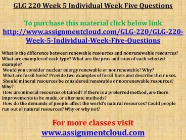 GLG 220 Week 5 Individual Week Five Questions PowerPoint PPT Presentation