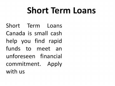 Short Term Loans Canada PowerPoint PPT Presentation