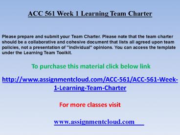 ACC 561 Week 1 Learning Team Charter PowerPoint PPT Presentation