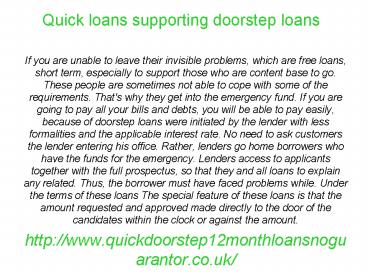 • http//www.quickdoorstep12monthloansnoguarantor.co