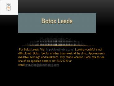 •  For Botox Leeds  Visit http//claesthetics.com/.