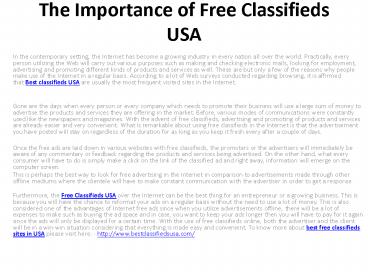 The Importance of Free Classifieds USA - PowerPoint PPT Presentation