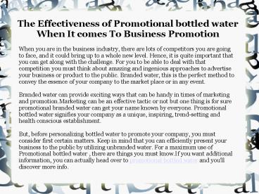 1The Effectiveness of Promotional bottled water