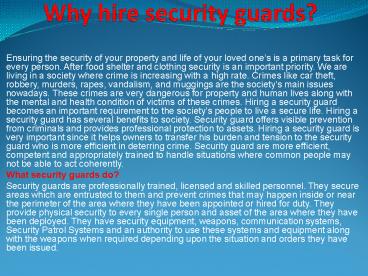 Why hire security guards? PowerPoint PPT Presentation