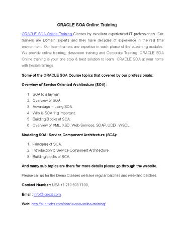 Title: ORACLE SOA Online Training
