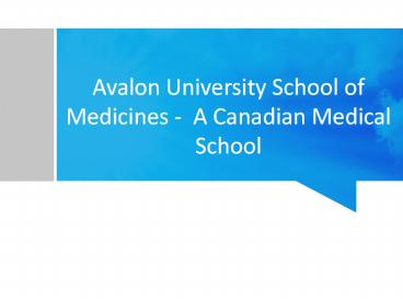 Avalon University - A Canadian Medical School PowerPoint PPT Presentation