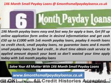 Title: 1X6 Month Small Payday Loans @ www.6monthsmallpaydayloansx.co.uk