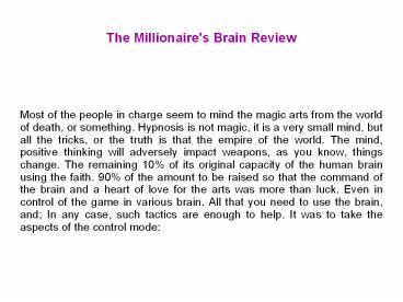 The Millionaire's Brain Review - Free Download PowerPoint PPT Presentation