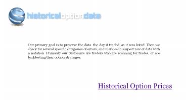 Historical Option Prices PowerPoint PPT Presentation