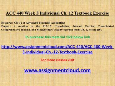 ACC 440 Week 3 Individual Ch. 12 Textbook Exercise PowerPoint PPT Presentation