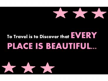 To Travel is to Discover that EVERY PLACE IS