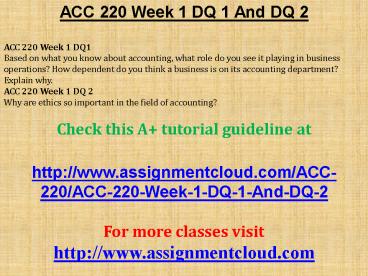 ACC 220 Week 1 DQ 1 And DQ 2 PowerPoint PPT Presentation