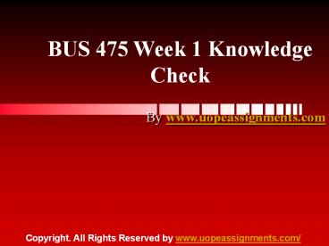 Title: BUS 475 Week 1 Knowledge Check Latest UOP Assignment