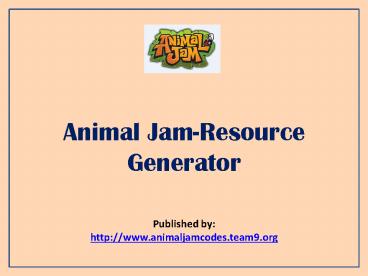 Animal Jam is an amazing game that has the noble aim of trying to teach children more about nature, the environment and the many amazing animals that combine to form our natural ecosystem.Animal Jam Resource Generator is able to generate Diamonds, Gems up to 999.999 and membership up to 12 Months. – PowerPoint PPT presentation