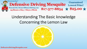 Title: Understanding The Basic knowledge Concerning the Lemon Law