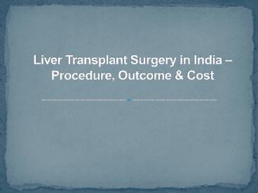 Liver Transplant Surgery in India – Procedure, Outcome & Cost PowerPoint PPT Presentation