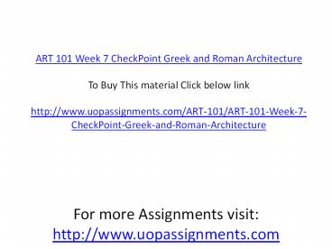 ART 101 Week 7 CheckPoint Greek and Roman Architecture PowerPoint PPT Presentation
