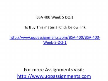 BSA 400 Week 5 DQ 1 PowerPoint PPT Presentation