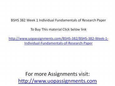 BSHS 382 Week 1 Individual Fundamentals of Research Paper PowerPoint PPT Presentation