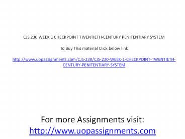 CJS 230 WEEK 1 CHECKPOINT TWENTIETH-CENTURY PENITENTIARY SYSTEM PowerPoint PPT Presentation