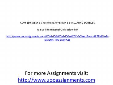COM 150 WEEK 3 CheckPoint APPENDIX B EVALUATING SOURCES PowerPoint PPT Presentation