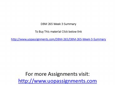 DBM 265 Week 3 Summary PowerPoint PPT Presentation