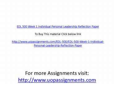 EDL 500 Week 1 Individual Personal Leadership Reflection Paper PowerPoint PPT Presentation