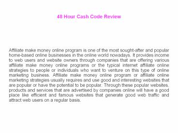 48 Hour Cash Code Review PowerPoint PPT Presentation