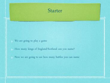• How many kings of England/Scotland can you name?