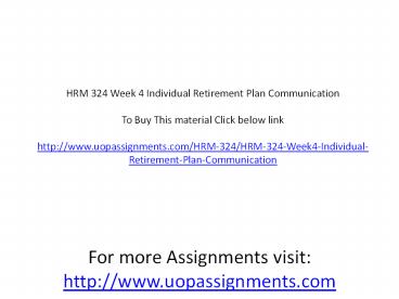 HRM 324 Week 4 Individual Retirement Plan Communication PowerPoint PPT Presentation
