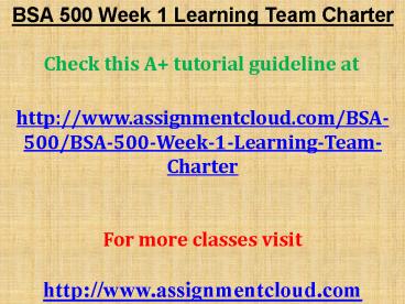 BSA 500 Week 1 Learning Team Charter PowerPoint PPT Presentation
