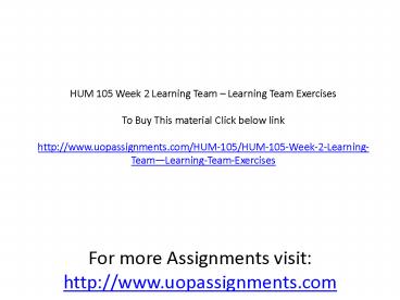 HUM 105 Week 2 Learning Team – Learning Team Exercises PowerPoint PPT Presentation