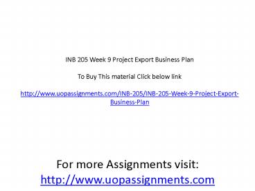 INB 205 Week 9 Project Export Business Plan PowerPoint PPT Presentation