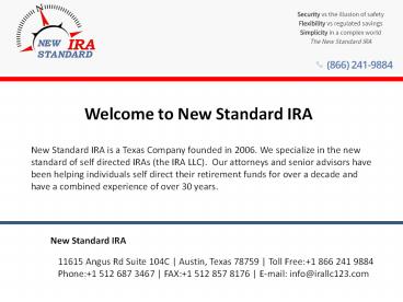 1Welcome to New Standard IRA