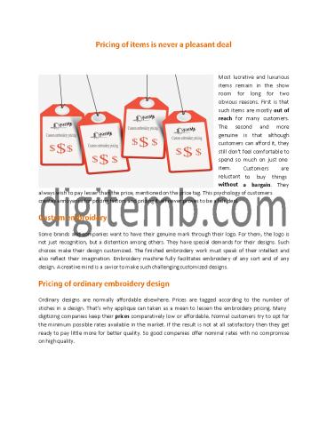 embroidery pricing are kept low globally. The
