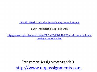 PRG 420 Week 4 Learning Team Quality Control Review PowerPoint PPT Presentation