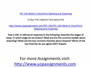 PSY 240 Week 6 CheckPoint Sleeping and Dreaming PowerPoint PPT Presentation