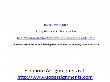 PSY 301 Week 1 DQ 2 PowerPoint PPT Presentation