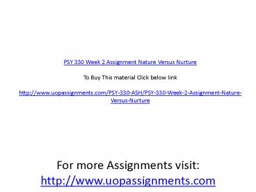PSY 330 Week 2 Assignment Nature Versus Nurture PowerPoint PPT Presentation