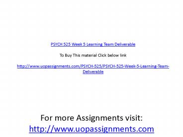 PSYCH 525 Week 5 Learning Team Deliverable PowerPoint PPT Presentation