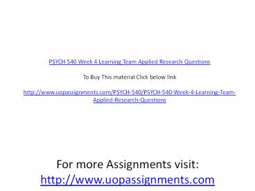 PSYCH 540 Week 4 Learning Team Applied Research Questions PowerPoint PPT Presentation