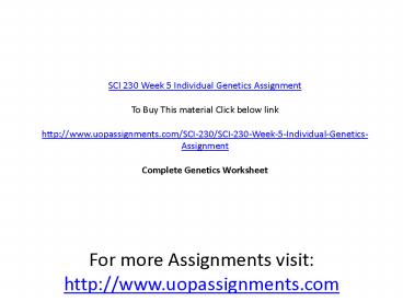 SCI 230 Week 5 Individual Genetics Assignment PowerPoint PPT Presentation